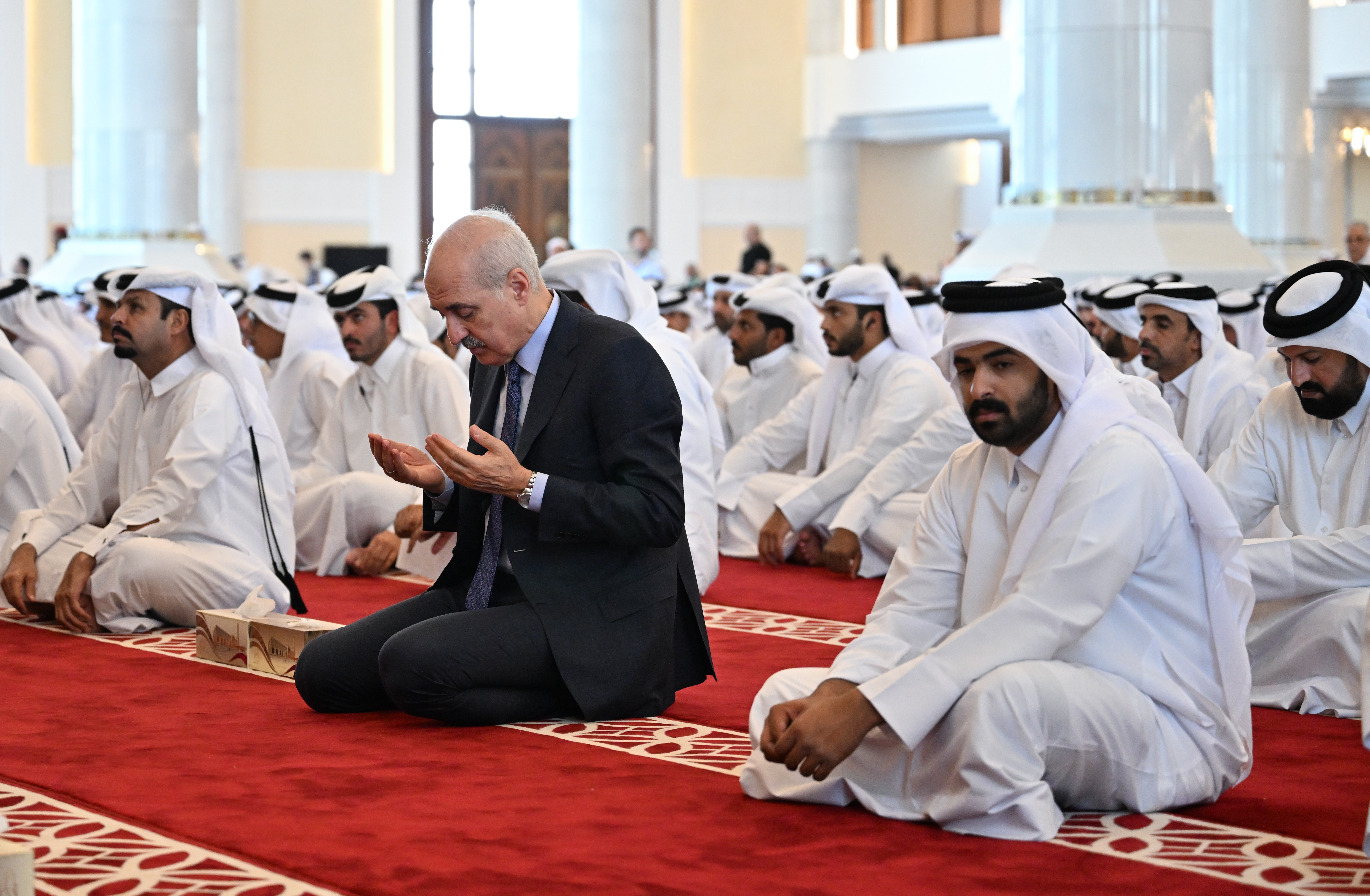 Katar Emiri Şeyh Temim bin Hamed Al Sani’nin de katıldığı cenaze töreninde, TBMM Başkanı Kurtulmuş, Cumhurbaşkanı Yardımcısı Cevdet Yılmaz, Dışişleri Bakanı Hakan Fidan, MİT Müsteşarı İbrahim Kalın, siyasi partilerden temsilciler ve milletvekilleri de yer aldı.