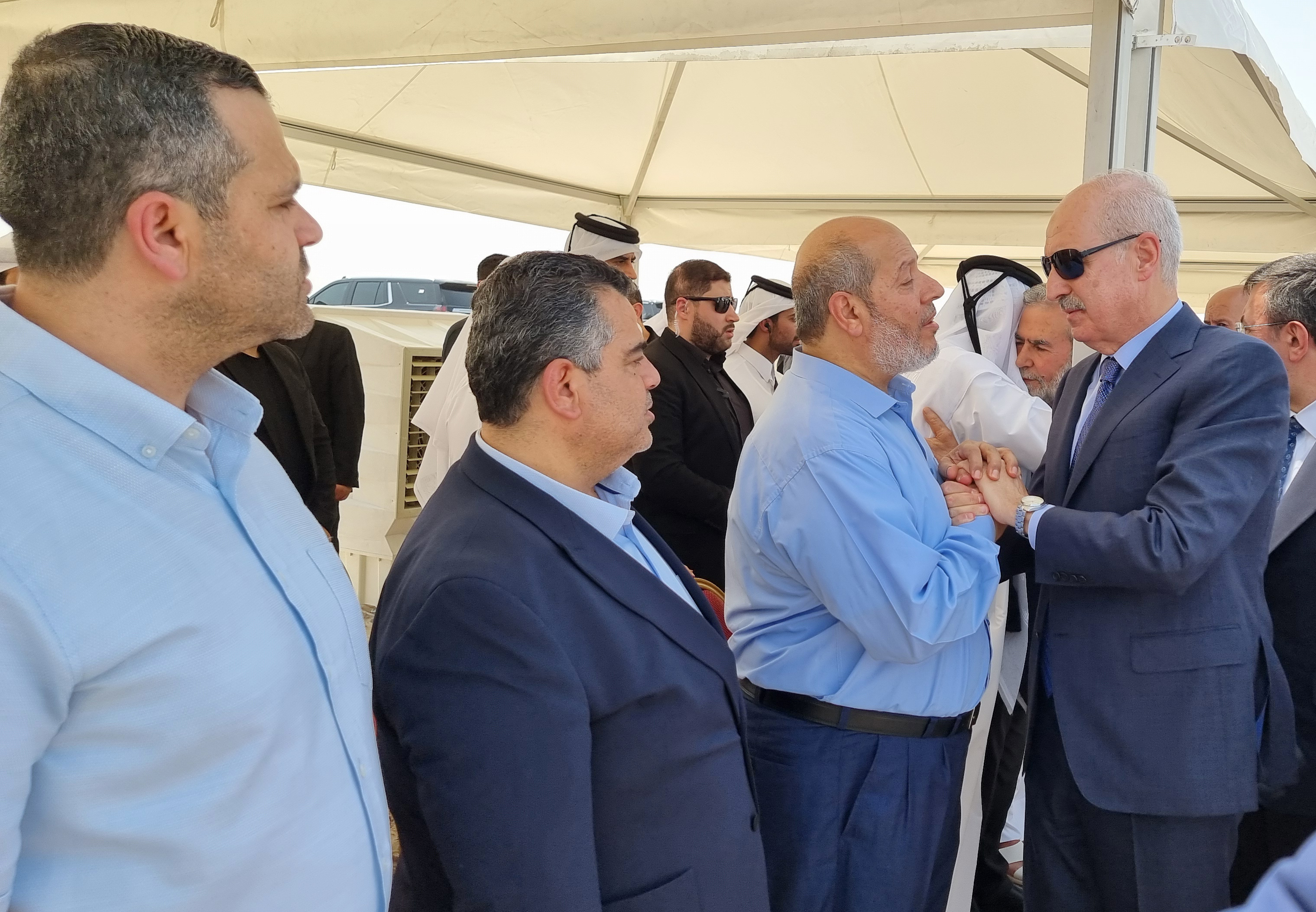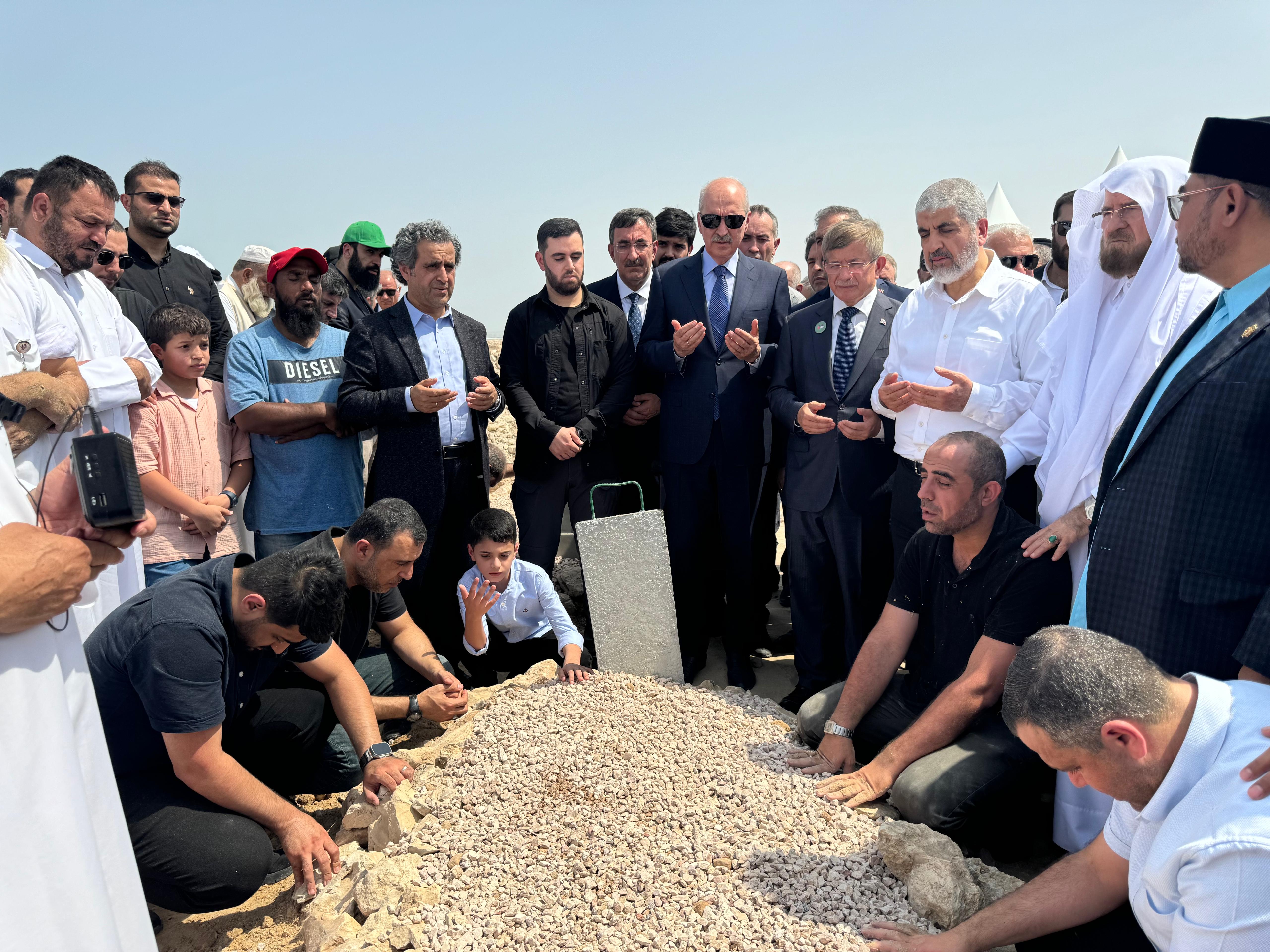 TBMM Başkanı Kurtulmuş ve Cumhurbaşkanı Yardımcısı Yılmaz ile milletvekilleri daha sonra İsmail Heniyye ve koruması Vesim Ebu Şaban’ın cenazelerinin defin törenine katıldı.