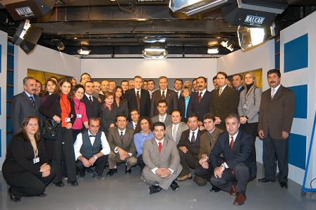 Meclis Televizyonu çalışanlarını kutlayan Arınç, daha sonra birlikte hatıra fotoğrafı çektirdi..