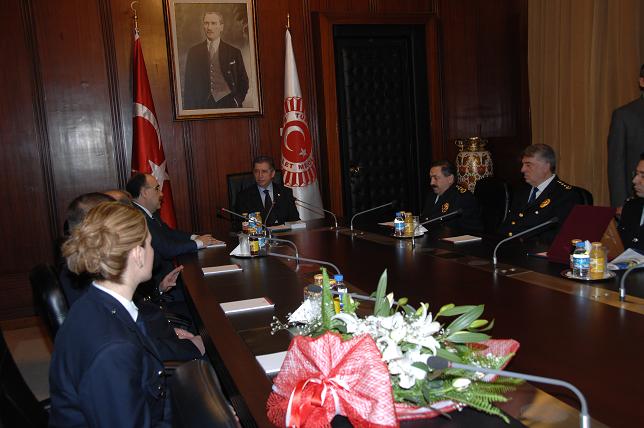 İçişleri Bakanı Beşir Atalay, Emniyet Genel Müdürü Oğuz Kağan Köksal ve beraberlerindeki emniyet mensuplarından oluşan heyet, Polis Teşkilatının Kuruluşunun 163. yıldönümü dolayısıyla TBMM Başkanı Köksal Toptan'a ziyarette bulundu.