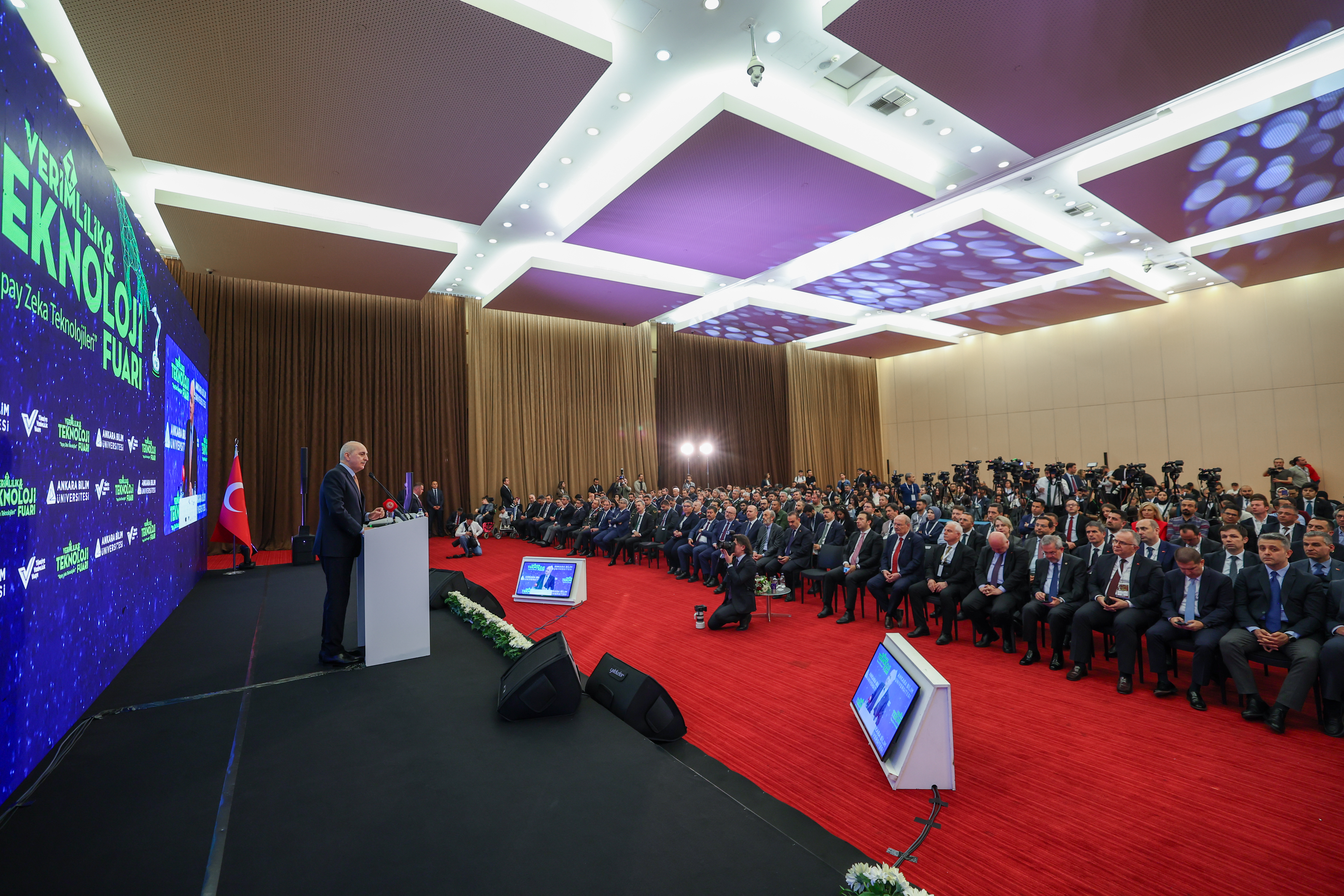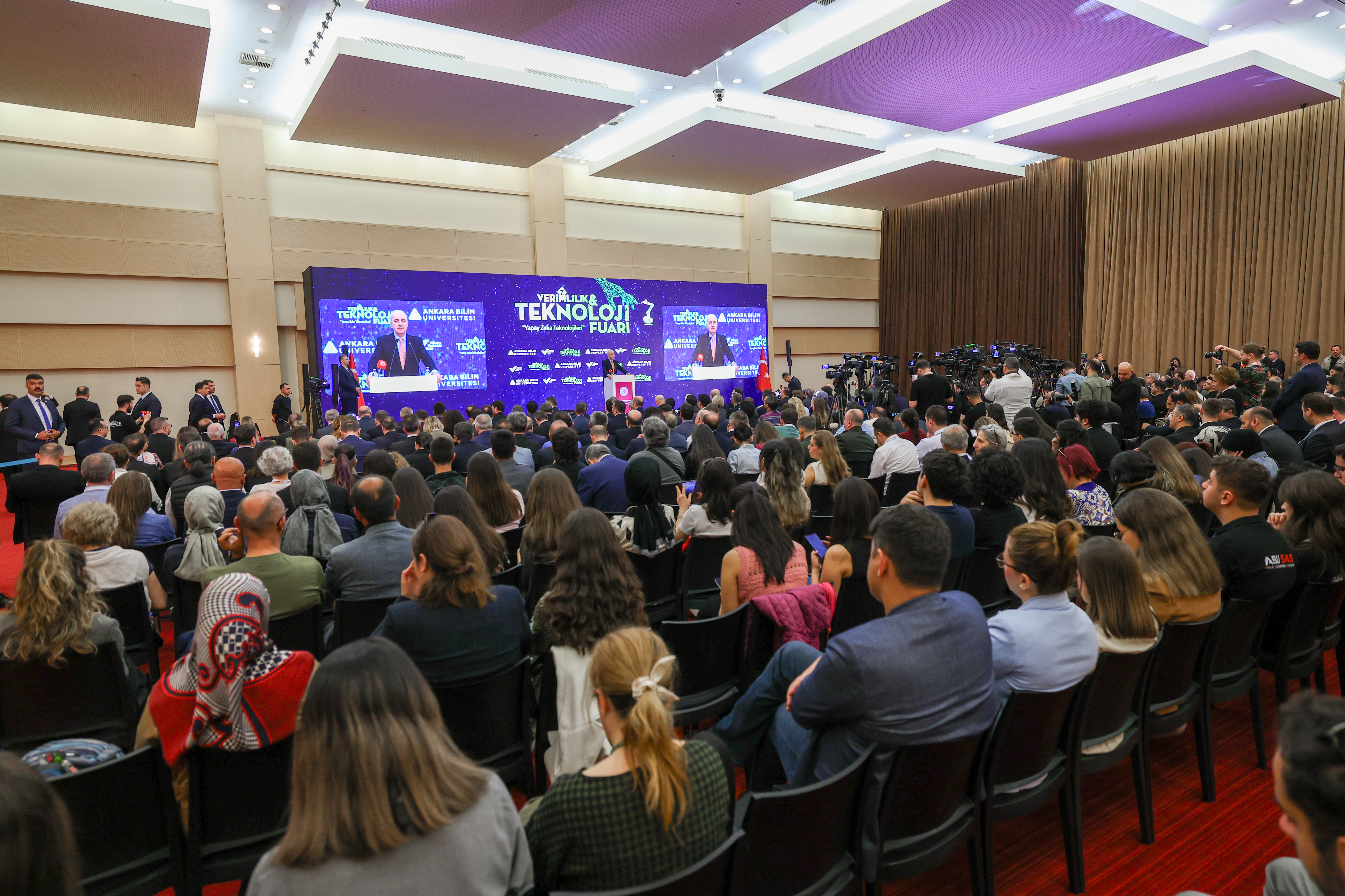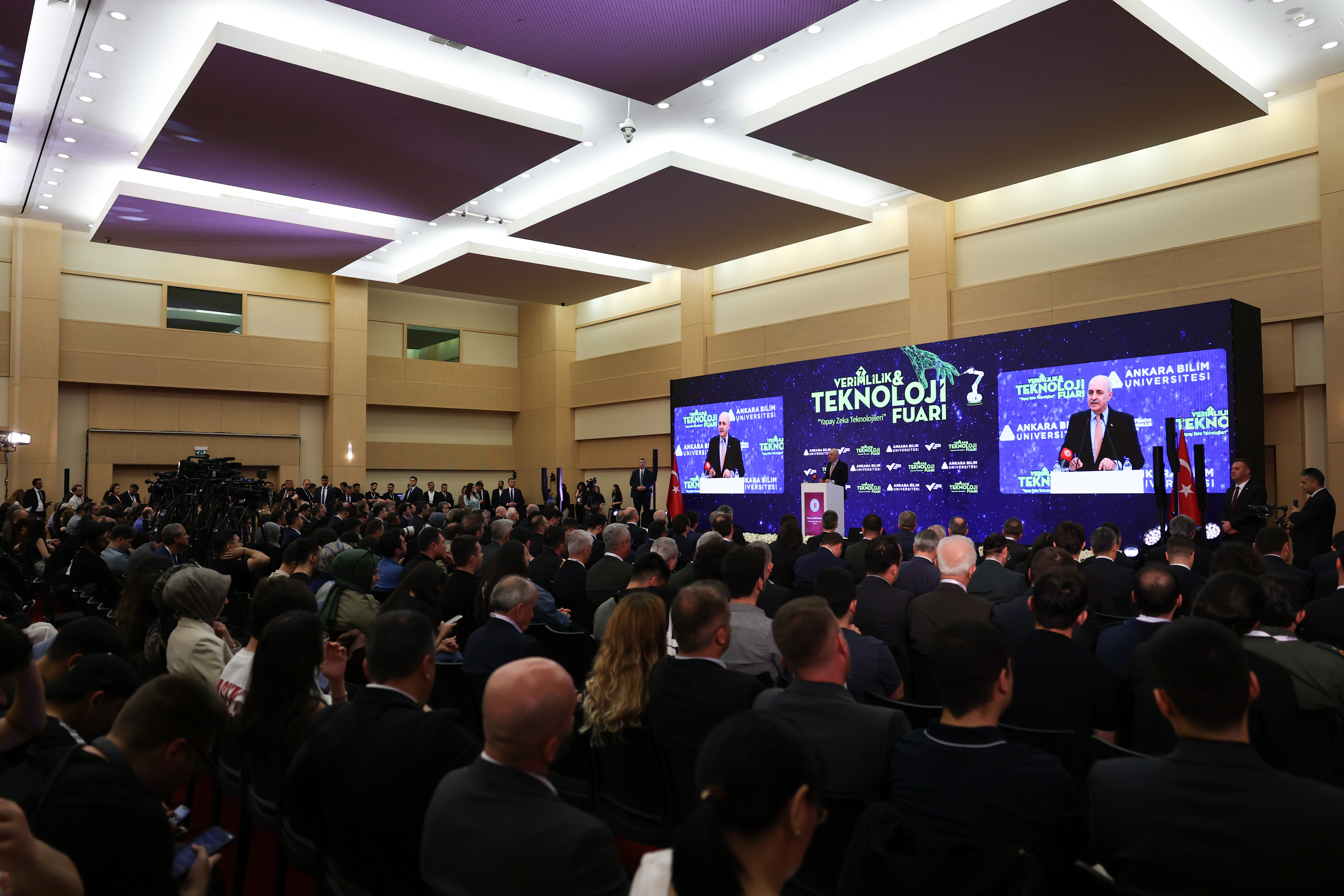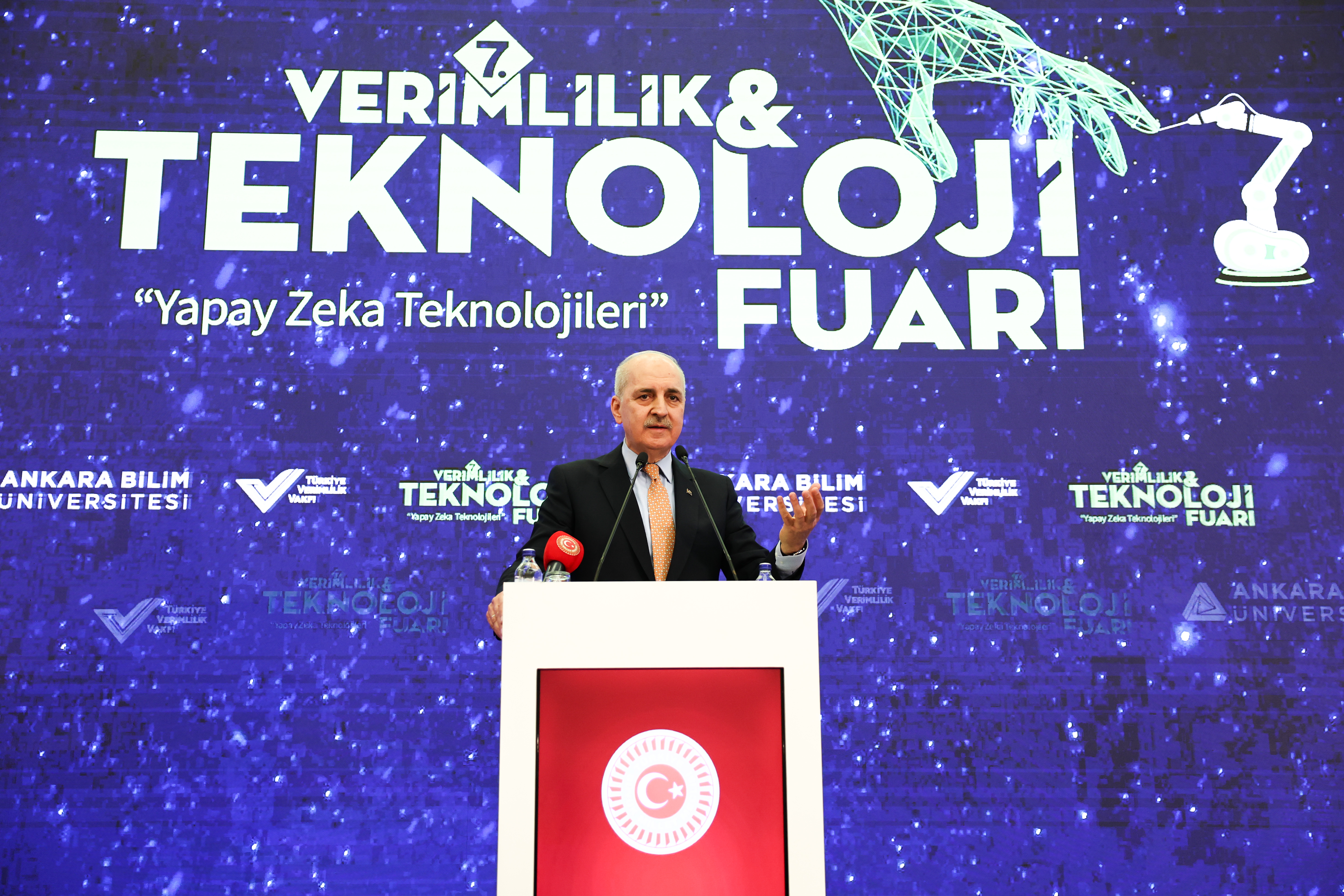 TBMM Başkanı Kurtulmuş, Ankara Bilim Üniversitesi tarafından ATO Congresium'da düzenlenen 7. Verimlilik ve Teknoloji Fuarı Açılış Töreni'nde yaptığı konuşmada, fuarın düzenlenmesinde emeği geçenleri ve öğrencileri tebrik etti.