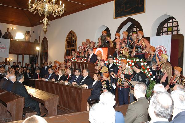 Sinop Mebusu Şerif Bey'in 23 Nisan 1920'de Birinci Meclis'te yaptığı konuşmanın seslendirilmesiyle başlayan tören, saygı duruşu ve İstiklal Marşı ile devam etti. Daha sonra TBMM Başkanı Toptan, Birinci Meclis kürsüsünden bir konuşma yaptı.