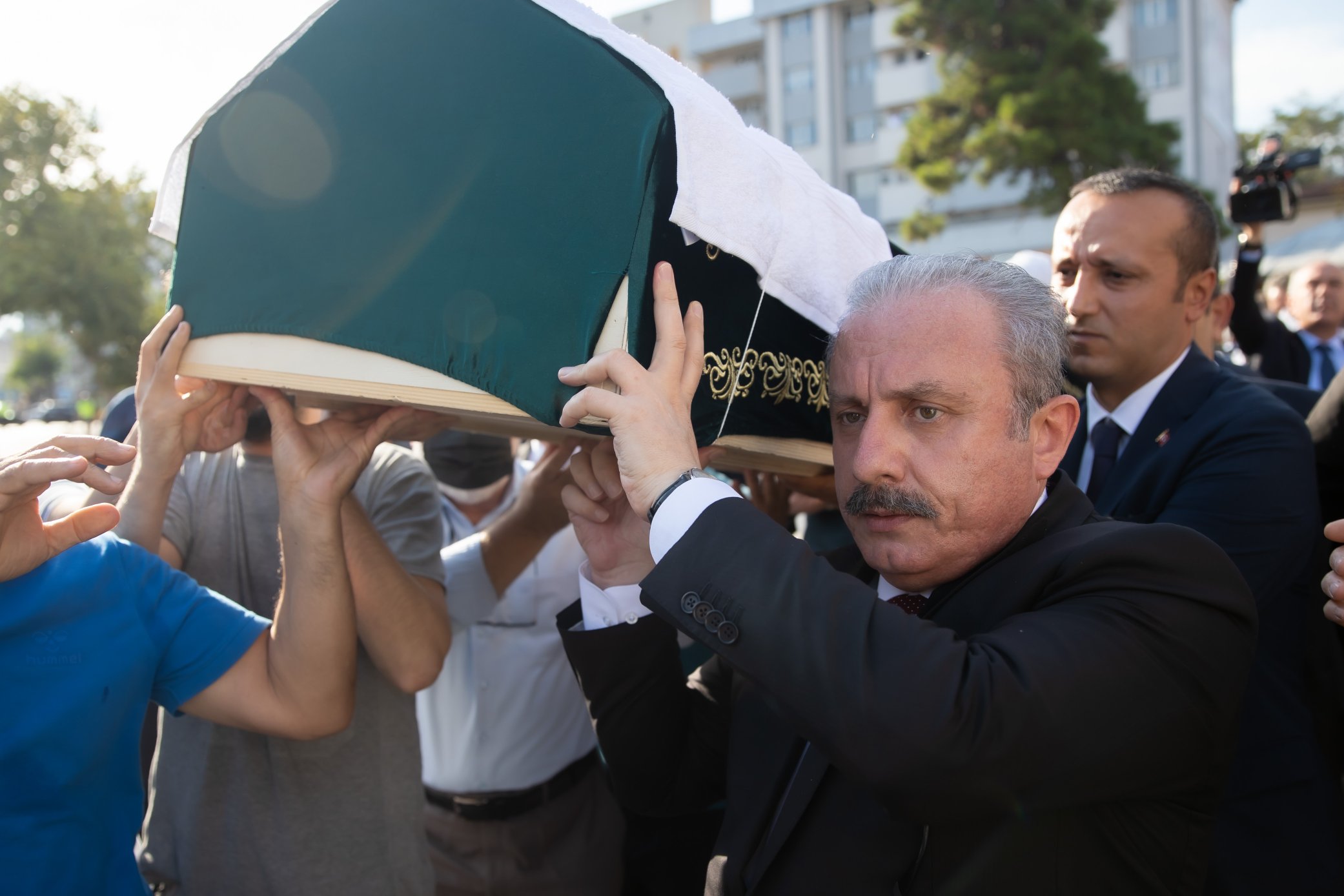 TBMM Başkanı Şentop ve yakınları, cami bahçesinde taziyeleri kabul etti.