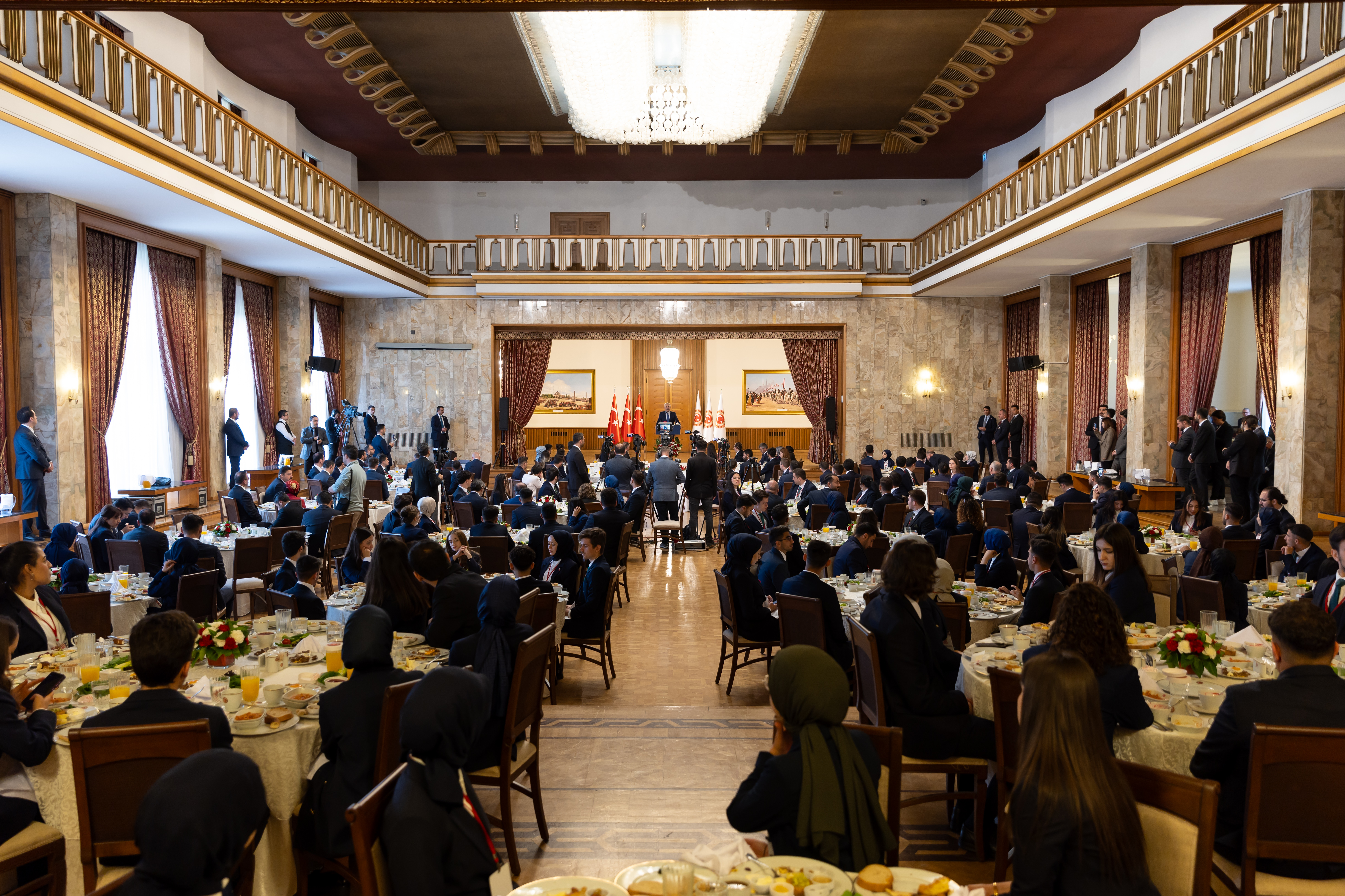 "Sizler kadar şanslı olmayan, dünyanın birçok yerindeki mazlum, yoksulluk ve yoksunluk içerisindeki genç kardeşlerimizi TBMM'den sevgiyle selamlıyoruz. Hiç şüphesiz onların başında, sekiz ayı aşkın bir süredir insanlık tarihinin görmediği kadar büyük acıları yaşayan, modern zamanlarda insanların şahit olmadığı kadar ağır bir katliamı, hatta soykırımı yaşayan Filistin'in genç evlatlarını saygıyla ve kardeşçe selamlıyor, onların acılarının en kısa süre içerisinde diliyoruz."