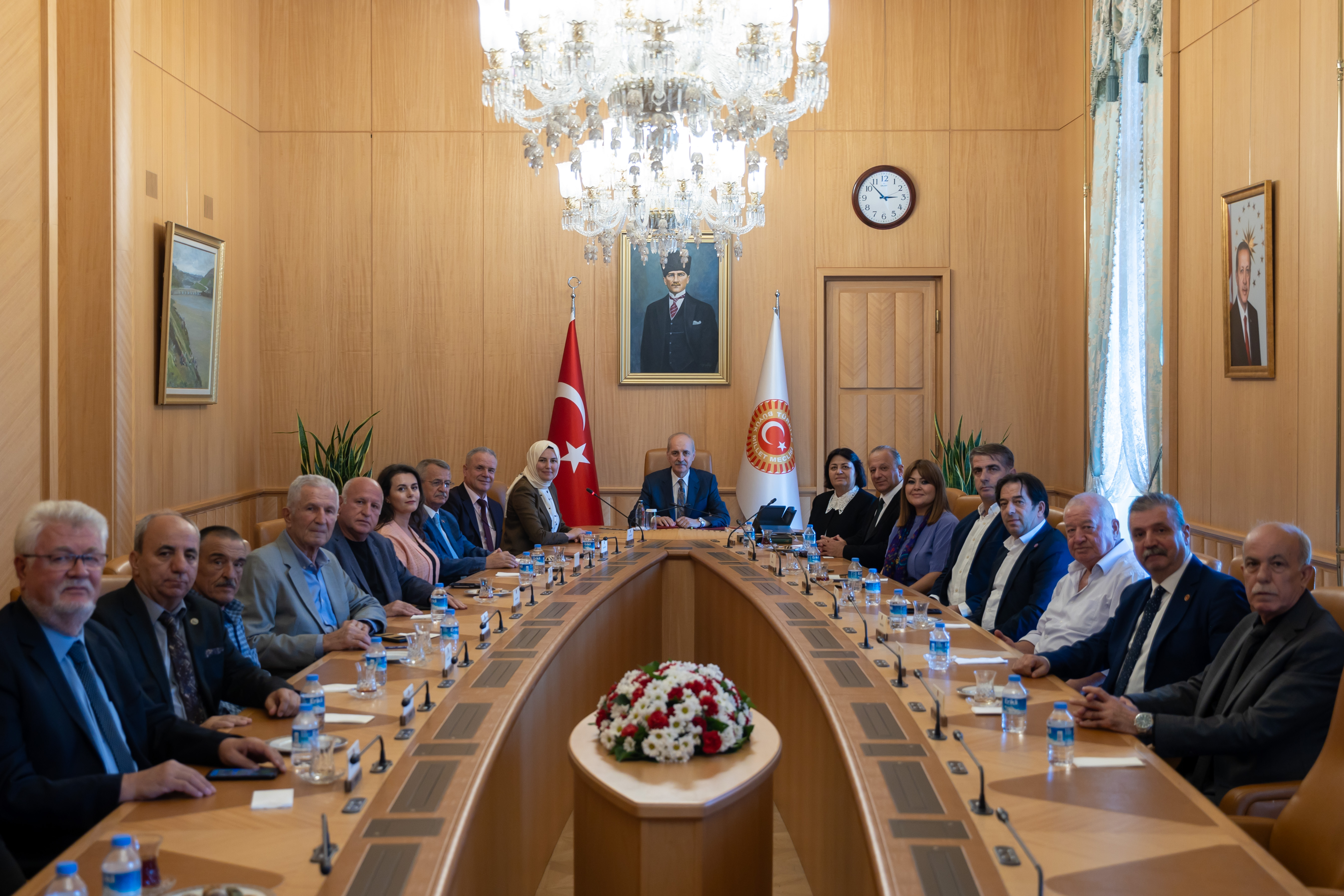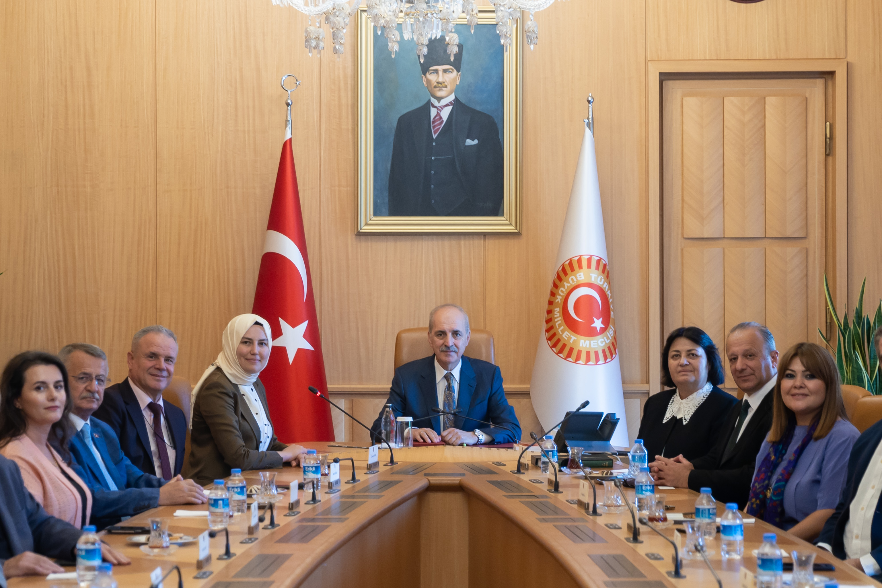 TBMM Başkanı Numan Kurtulmuş, Balkan Göçmenleri İktisadi Araştırma ve Sosyal Yardımlaşma Vakfı (BİSAV) heyetini kabul etti.