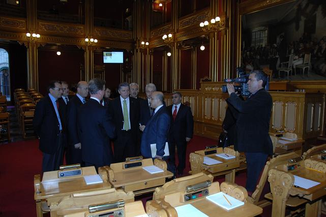 sonra beraberindeki heyetle birlikte Parlamento binasını gezen Toptan'a, Norveç