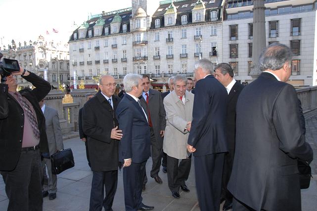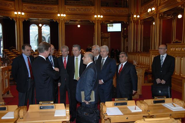 sonra Norveç Parlamento Başkanı Jagland ile başbaşa görüştü. Daha sonra, heyetler