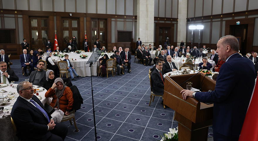 TBMM Başkanı Numan Kurtulmuş, Cumhurbaşkanı Recep Tayyip Erdoğan'ın ev sahipliğinde Cumhurbaşkanlığı Külliyesinde şehit aileleri ve gaziler onuruna verilen iftar programına katıldı.