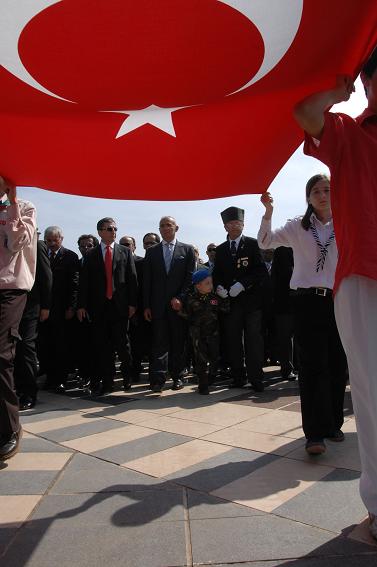 Anıta çelenk konulup saygı duruşunda bulunulduktan sonra törenlere