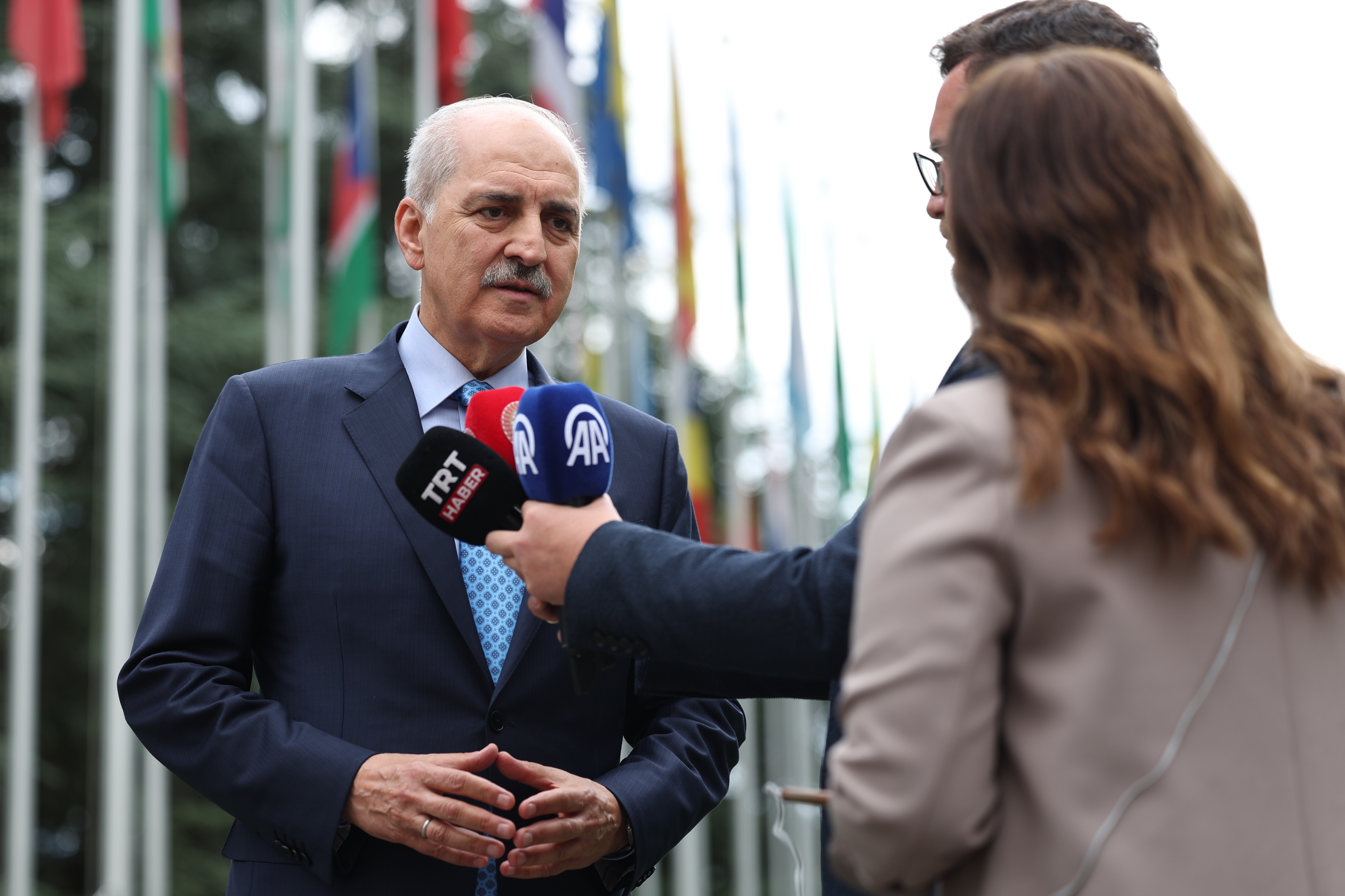 Kurtulmuş, Altıncı Dünya Parlamento Başkanları Konferansı dolayısıyla bulunduğu İsviçre’nin Cenevre şehrindeki Birleşmiş Milletler Ofisi’nde, gazetecilerin sorularını yanıtladı.