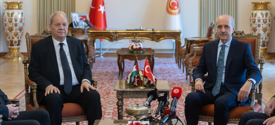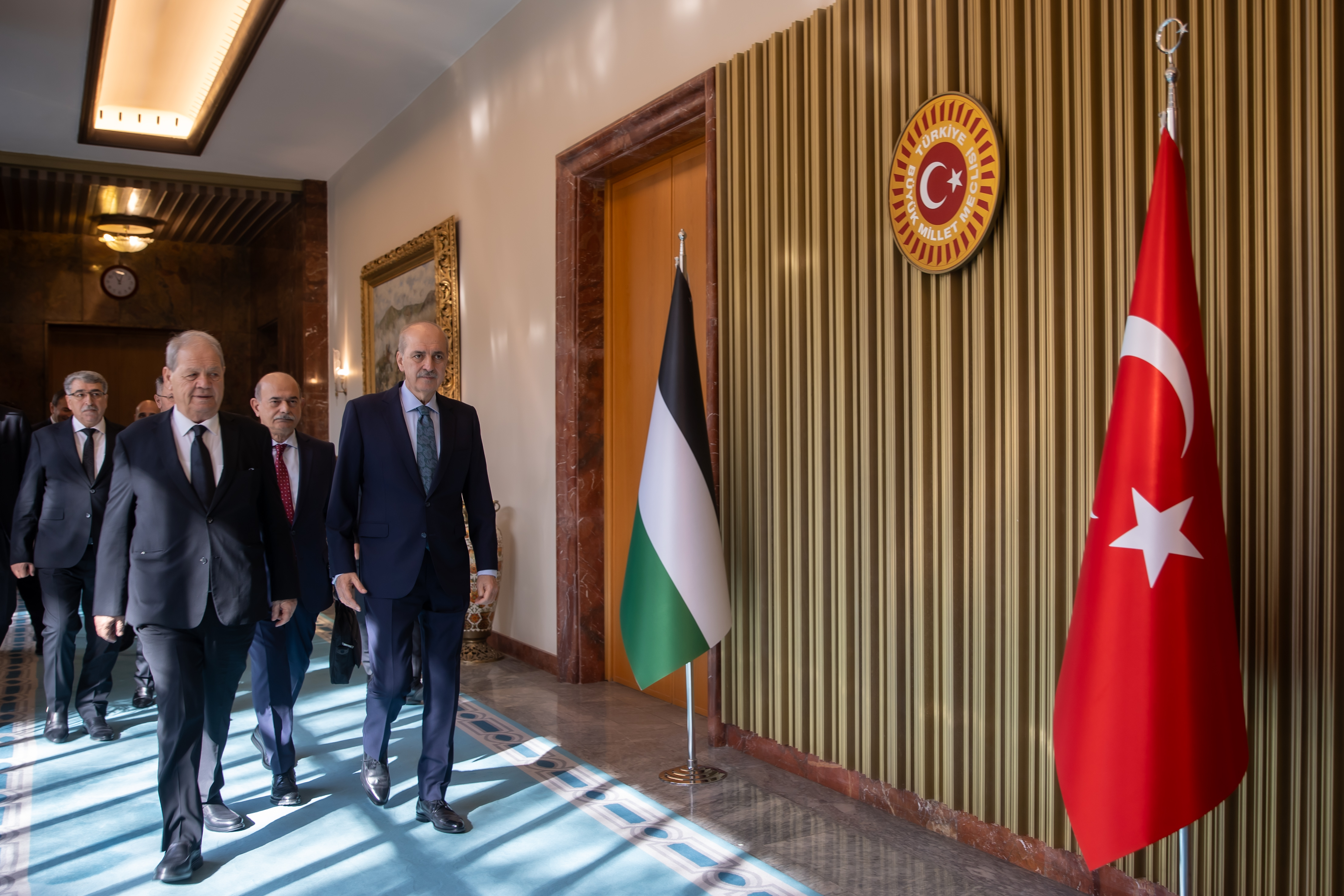 TBMM Başkanı Numan Kurtulmuş, Filistin Ulusal Konseyi Başkanı Ravhi Fattuh ve beraberindeki heyetle Meclis’te bir araya geldi.