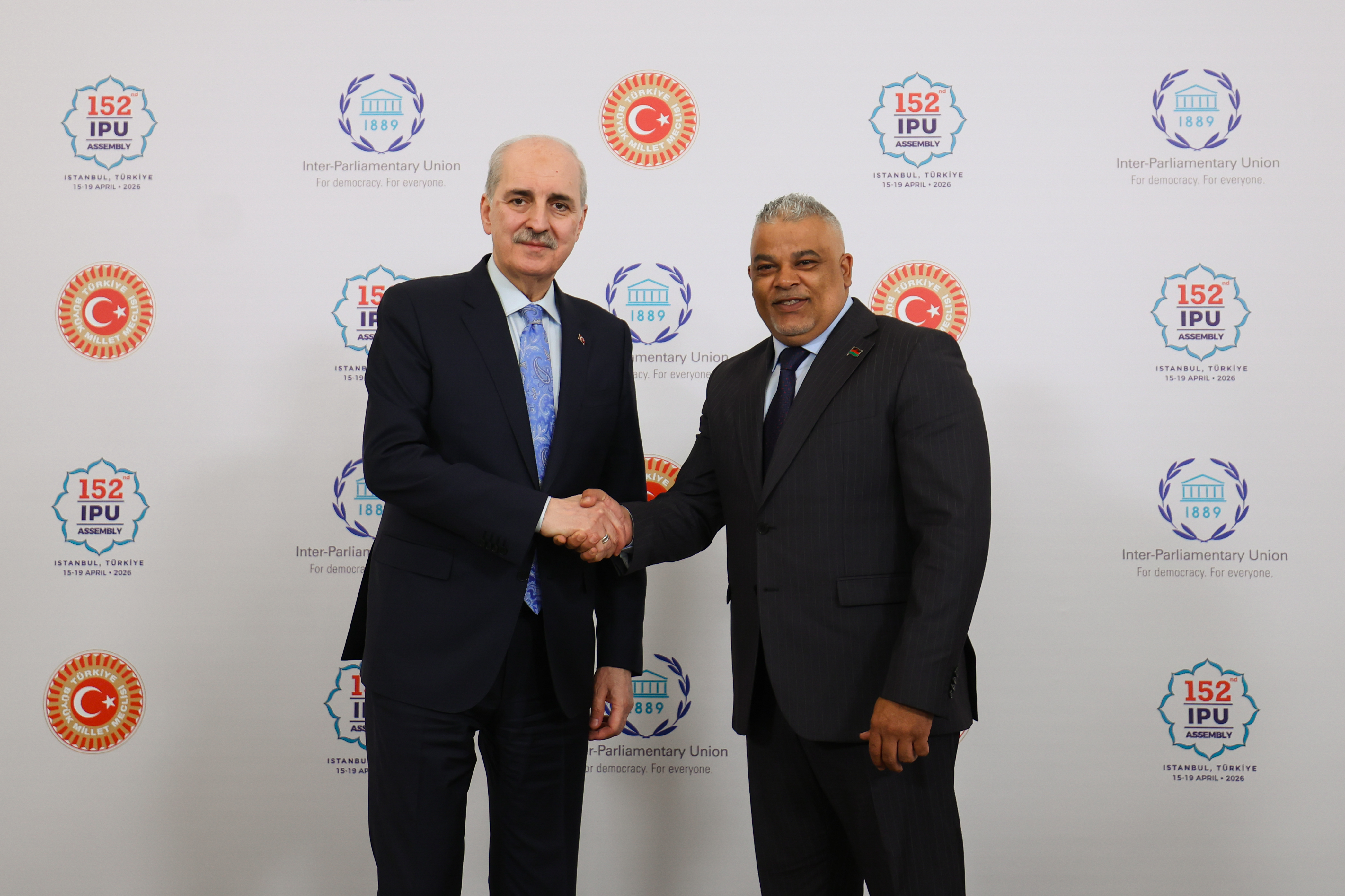 Türkiye Büyük Millet Meclisi Başkanı Numan Kurtulmuş, Parlamentolar Arası Birlik (PAB) 152’nci Genel Kurulu için İstanbul’da bulunan Malavi Ulusal Meclisi Başkanı Sameer Suleman ile bir araya geldi.