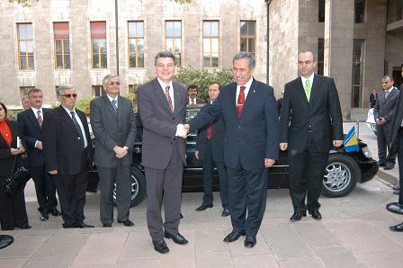 Caferoviç'i Başkanlık girişinde karşılayan Arınç, kendisiyle yaklaşık yarım saat baş başa görüştü. Daha sonra heyetlerarası görüşmelere geçildi.