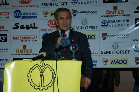 Meclis Başkanı Arınç, yemekte yaptığı konuşmada bir takım kuru gürültülerin toplumun huzurunu kaçırmak için yapıldığını savundu. Türkiye'nin sahip olduğu medeniyet birikimine dikkat çeken Arınç "Türkiye bu şartlar içerisinde büyük devlet olmaya mecburdur. Bizi büyük devlet olmaktan öteye, bir hasta adam psikolojisiyle kendi içerisinde kavgalı, küçülmüş, içine kapanmış bir devlet olmaya götürmeyi çok seven kişiler, kurumlar ve odaklar olabilir." dedi.