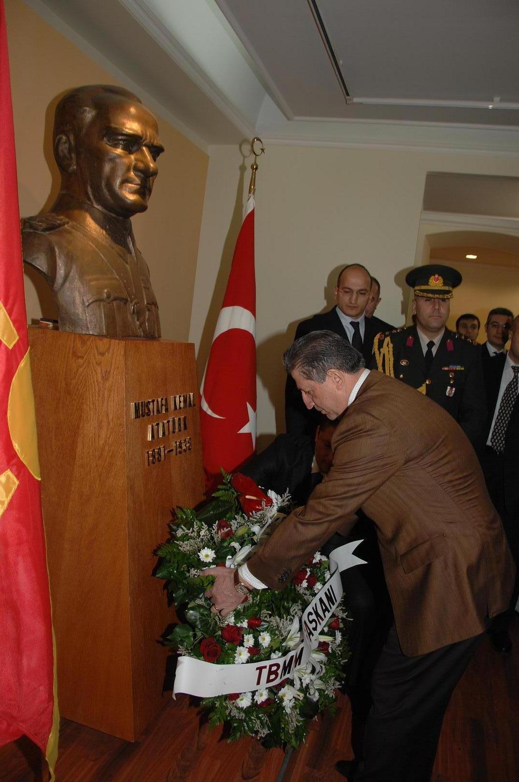 Daha sonra Atatürk'ün 1896-1899 yılları arasında eğitim gördüğü Askeri İdadisini ziyaret eden Toptan, 1996'da restore edilerek, ziyaretçilere açılan ''Atatürk Anı Odası'' nda, Atatürk büstüne çelenk koydu. Toptan, Anı Defteri'ne, ''Cumhuriyetimizin kurucusu, TBMM'nin ilk Başkanı, büyük önderimiz Mustafa Kemal Atatürk'ün 1896-1899 yılları arasında eğitim gördüğü askeri okulda bulunmaktan, büyük bir heyecan duyuyorum. Onun dolaştığı yerde dolaşmak, gördüklerini görmek, hepimiz için mutluluk vericidir. Kurduğu Cumhuriyet, çağdaş uygarlık ve kararlı adımlarla yürümektedir. Ruhun şad olsun'' diye yazdı.