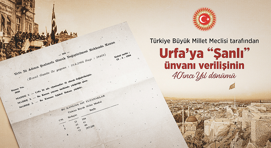 TBMM Başkanı Numan Kurtulmuş, Kurtuluş Savaşı'nda gösterilen kahramanlıktan dolayı Urfa'ya TBMM tarafından "Şanlı" ünvanı verilişinin 40. yıl dönümü nedeniyle bir kutlama mesajı yayımladı.