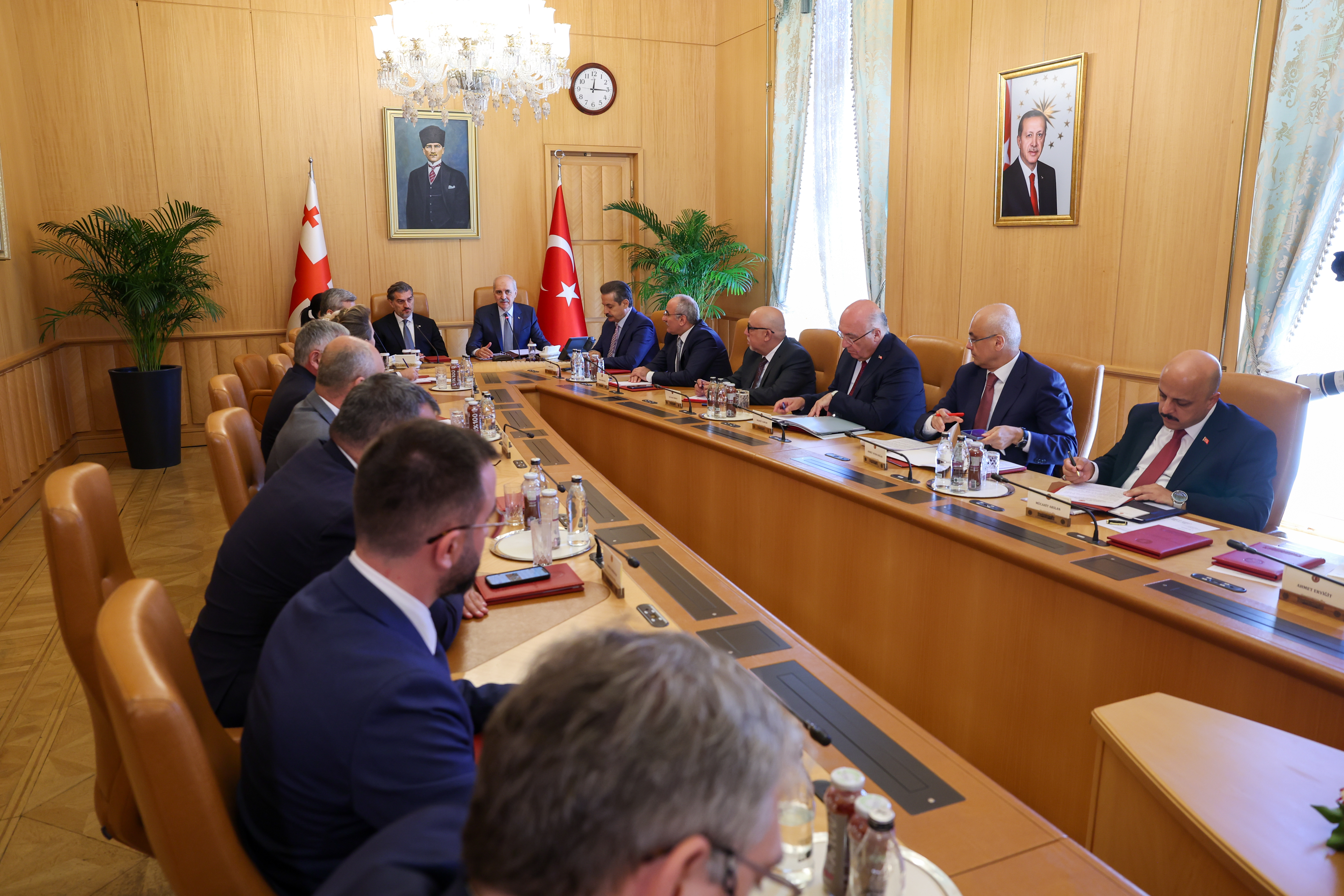 Daha sonra TBMM Başkanı Kurtulmuş ve Gürcistan Cumhurbaşkanı Kavelaşvili baş başa ve heyetler arası görüşme gerçekleştirdi.
