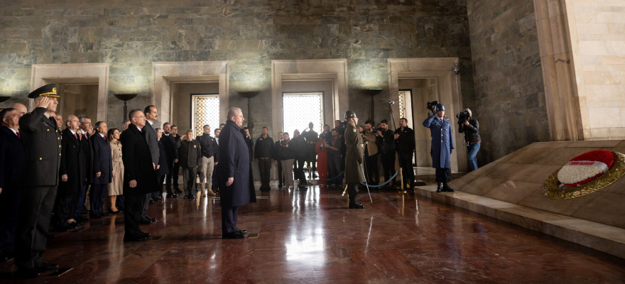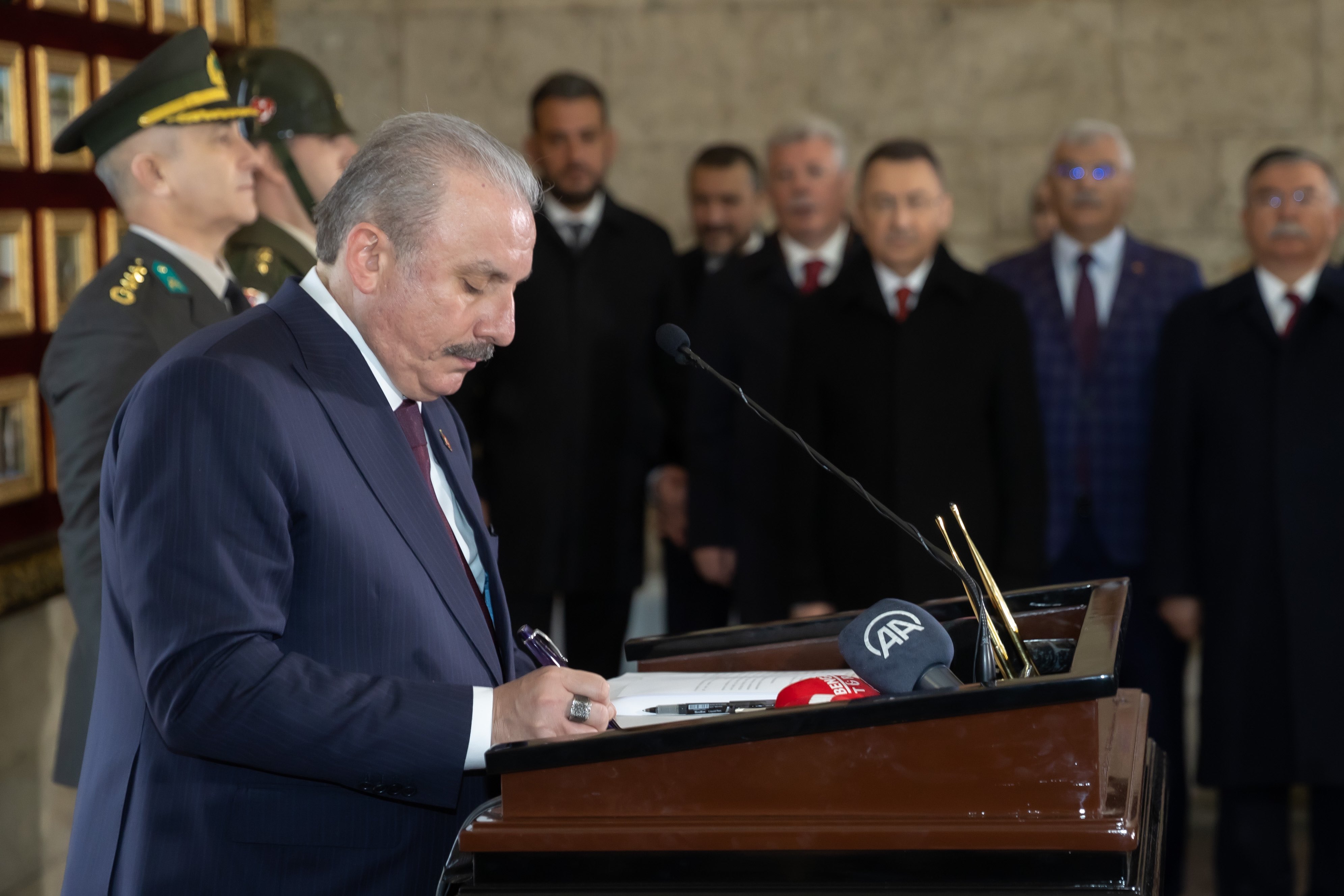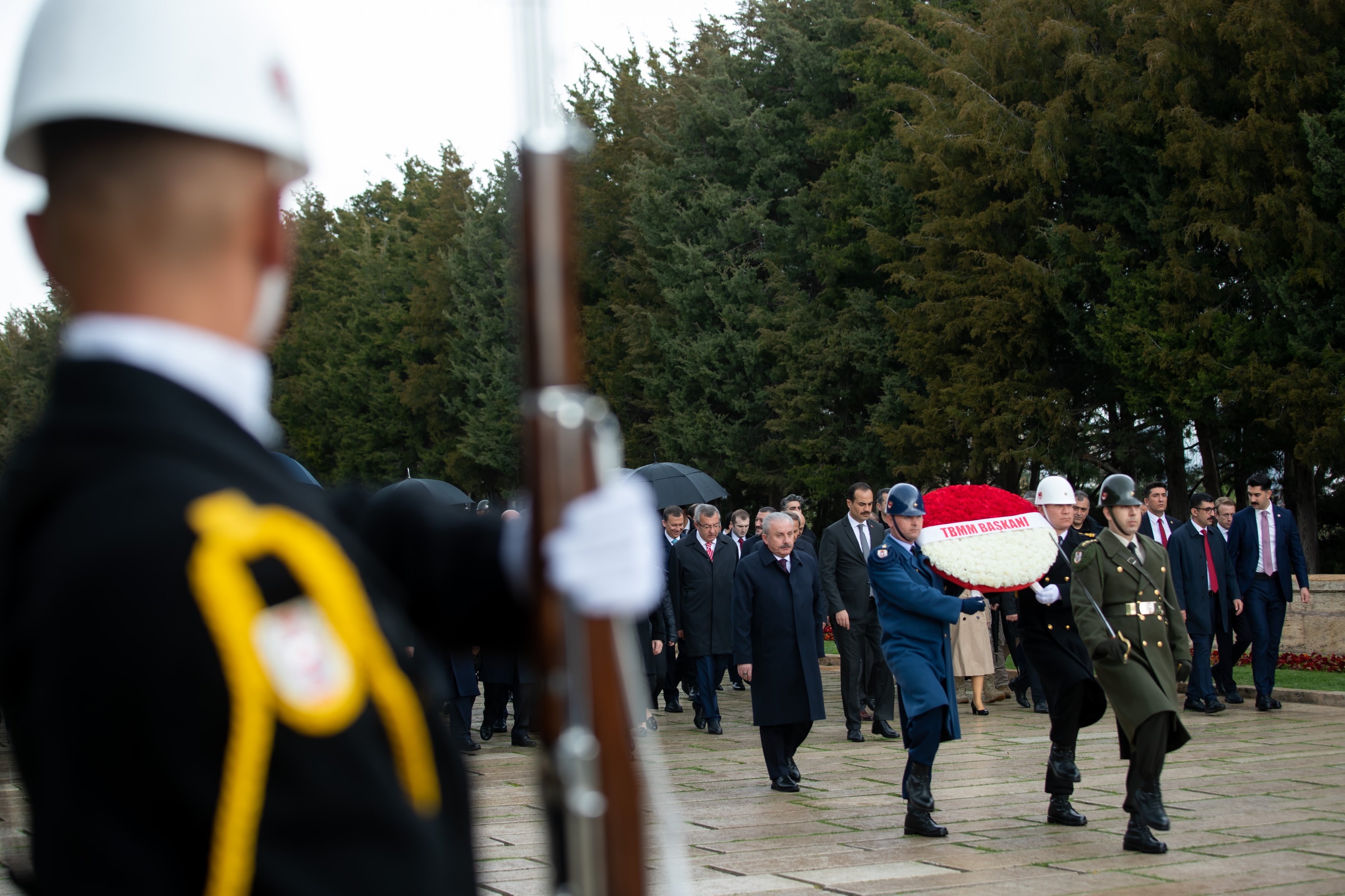 Aslanlı Yol'dan yürüyerek Gazi Mustafa Kemal Atatürk'ün mozolesine gelen heyet, TBMM Başkanı Şentop'un mozoleye çelenk bırakmasının ardından saygı duruşunda bulundu ve İstiklal Marşı'nı okudu.