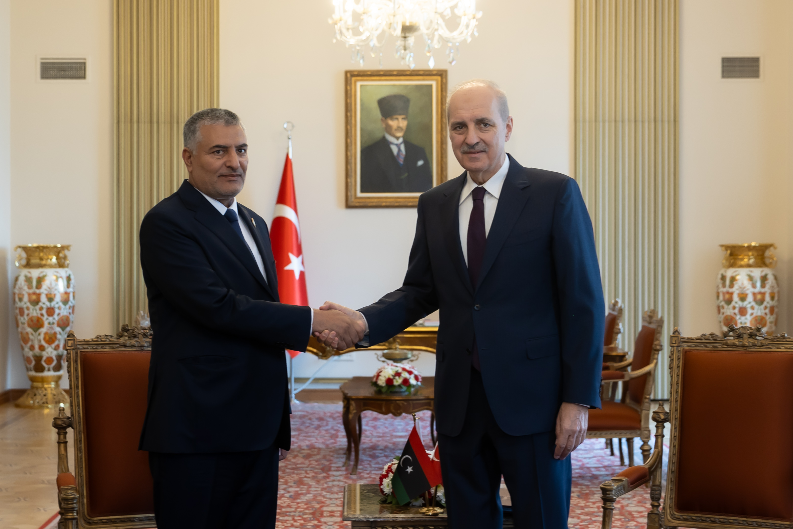 TBMM Başkanı Kurtulmuş, Libya Yüksek Devlet Konseyi Başkanı Muhammed Miftah Takala ile Meclis’te bir araya geldi.