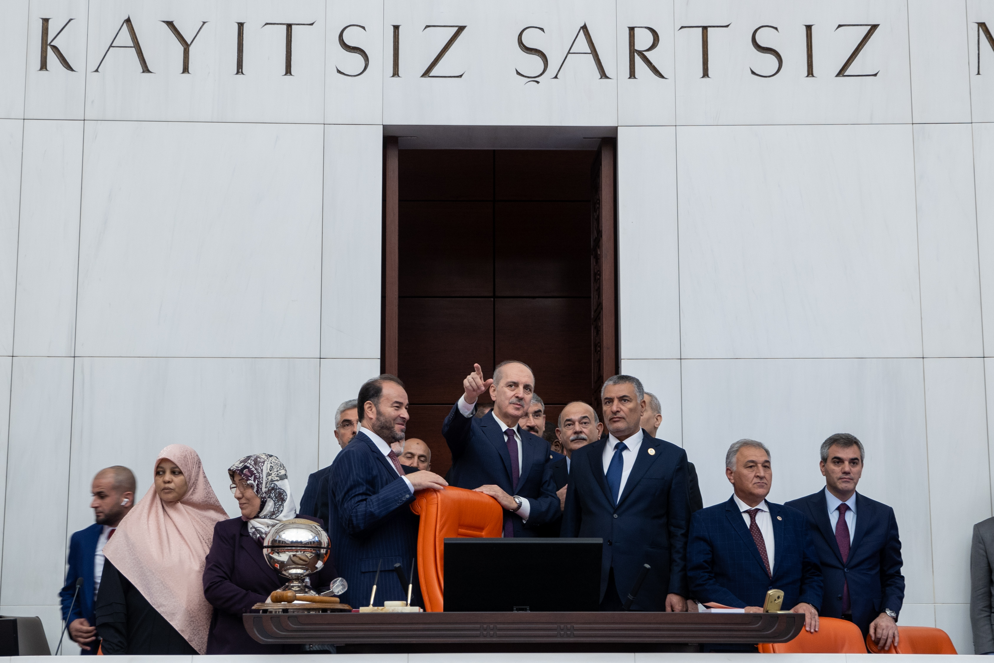 Kurtulmuş, Genel Kurul Salonunu gezdirdiği Takala ve Libyalı parlamenterlere Meclis’in çalışmaları hakkında bilgi verdi.