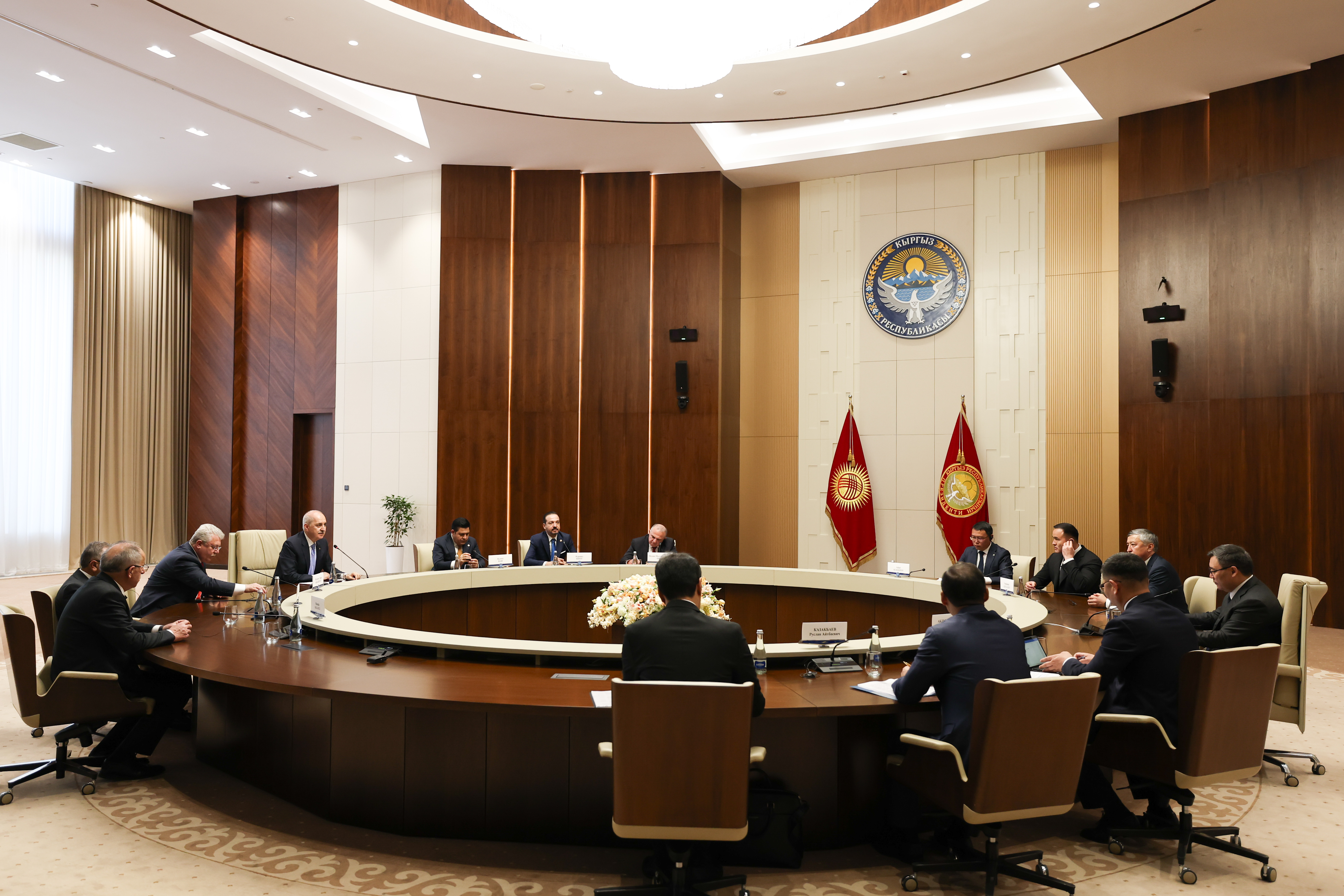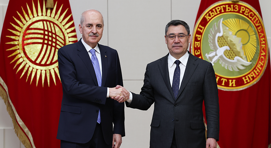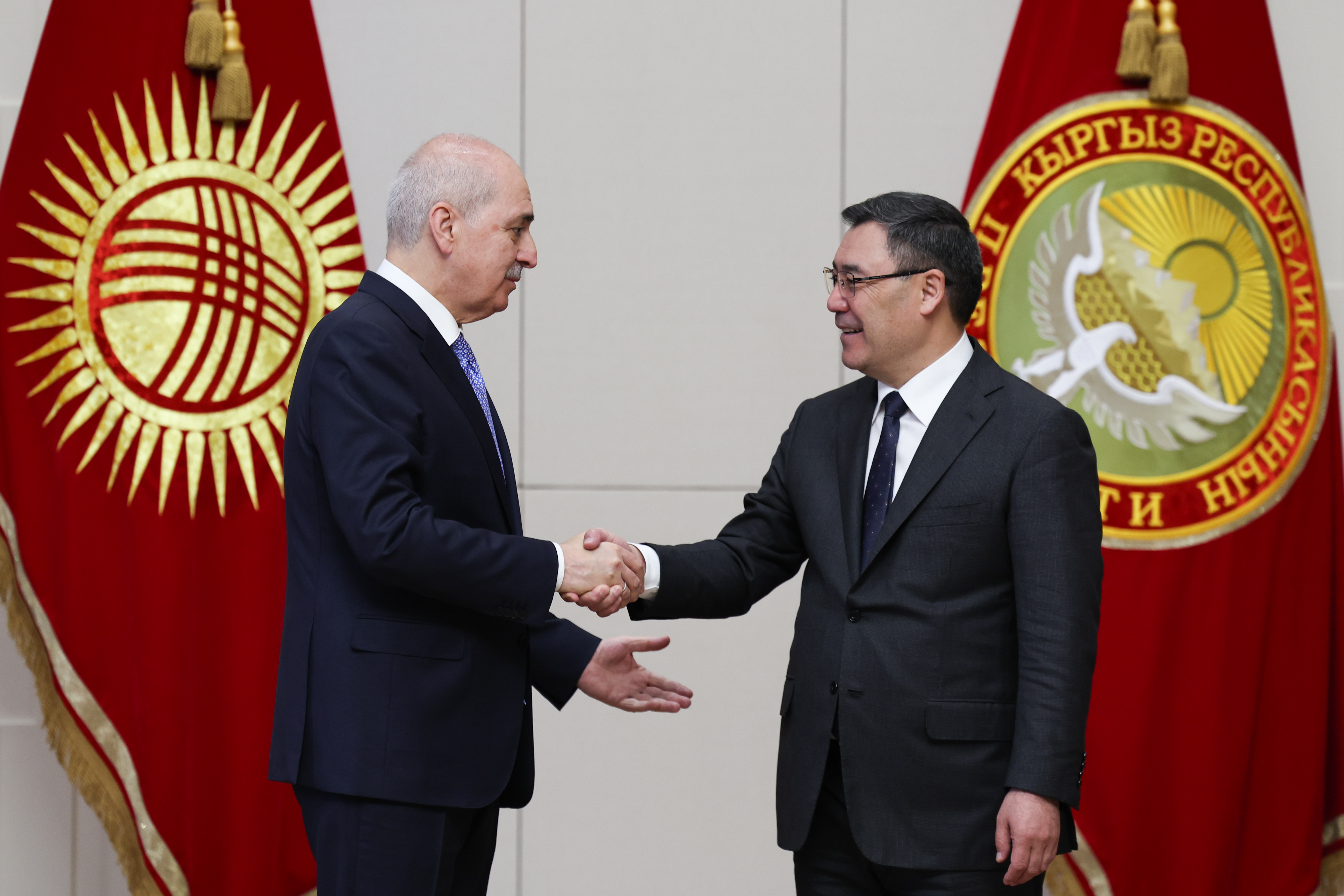 TBMM Başkanı Numan Kurtulmuş, resmi ziyaret gerçekleştirdiği Kırgızistan'ın başkenti Bişkek'te, Cumhurbaşkanı Sadır Caparov tarafından kabul edildi.