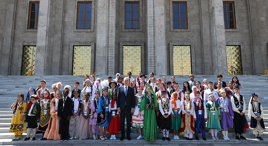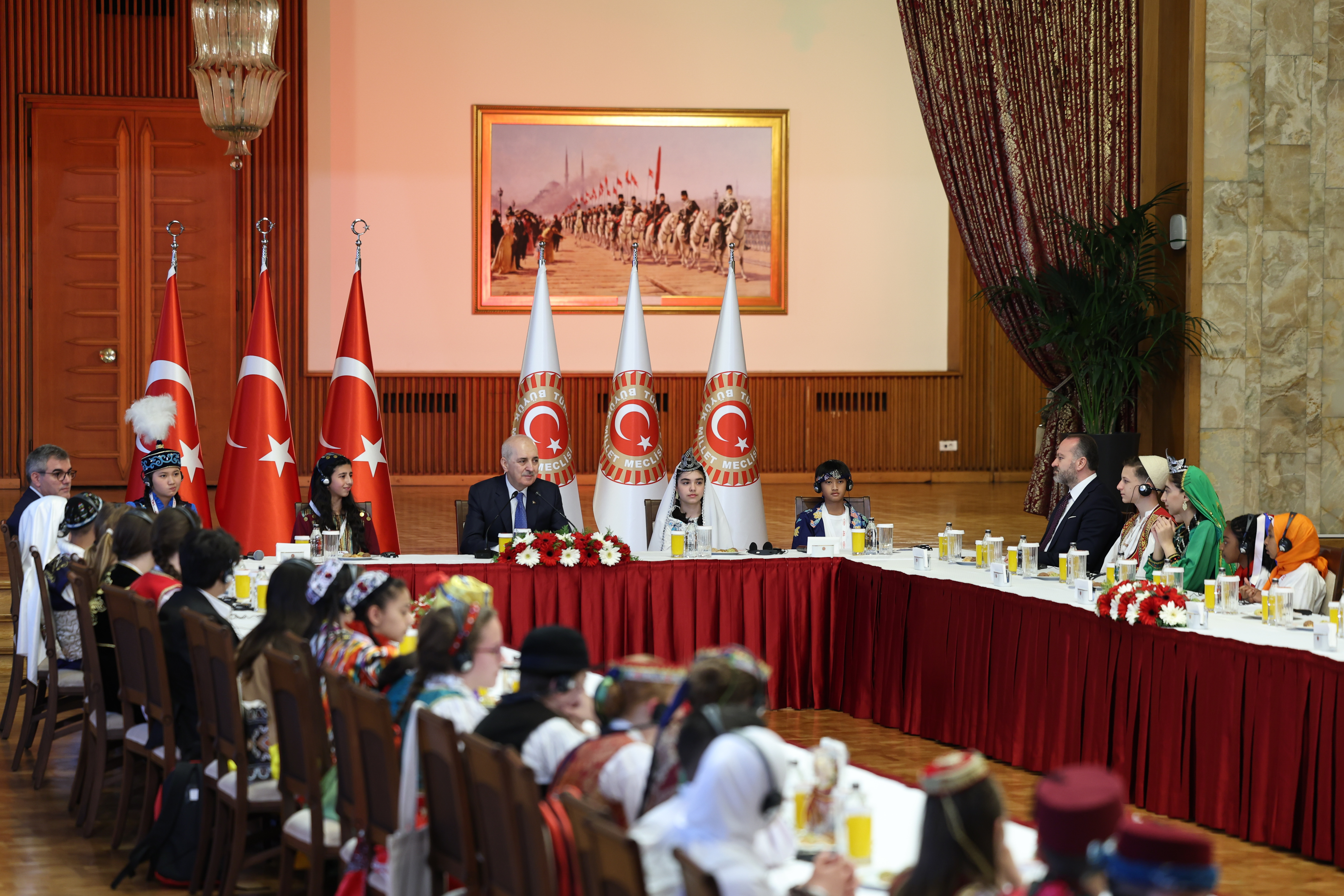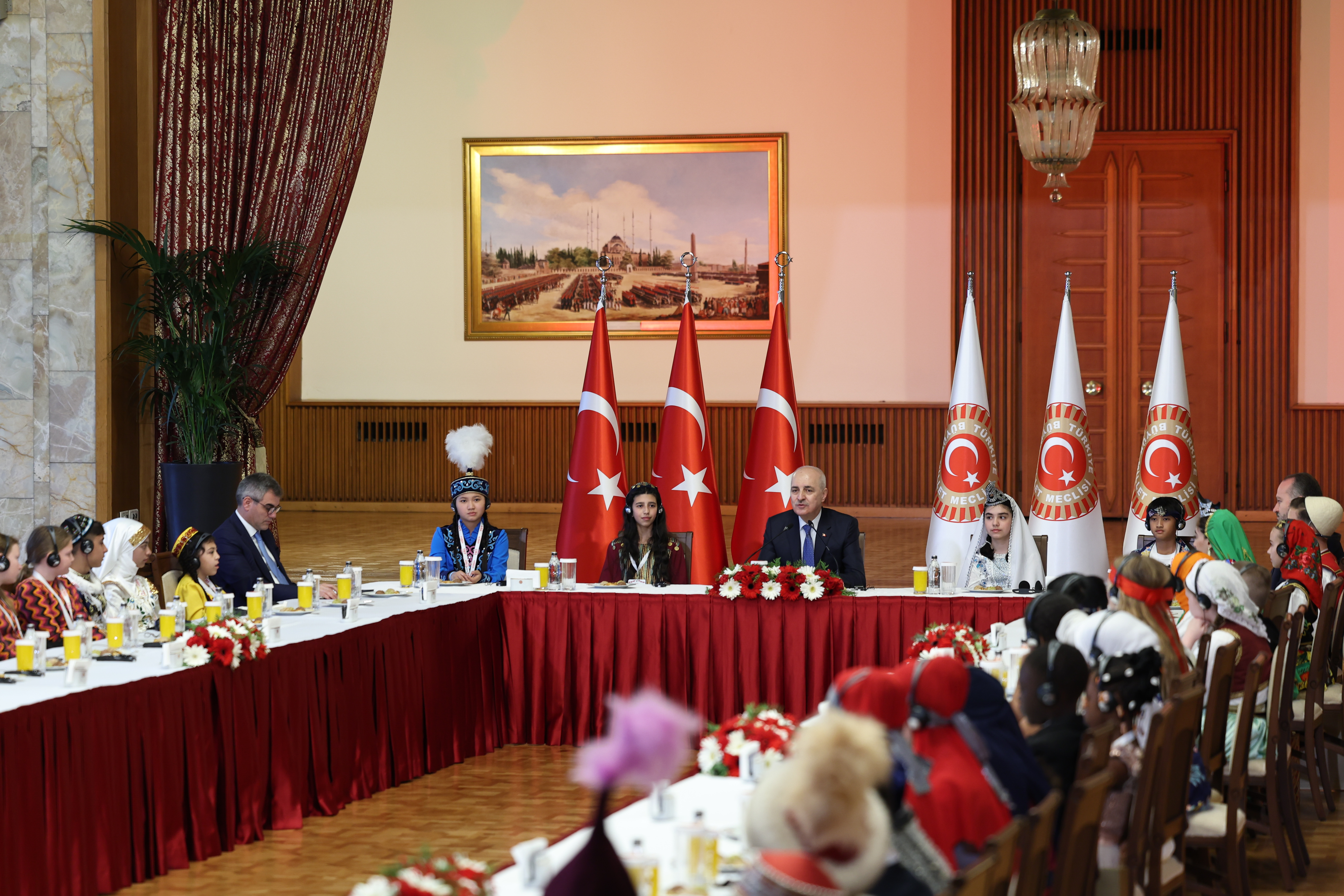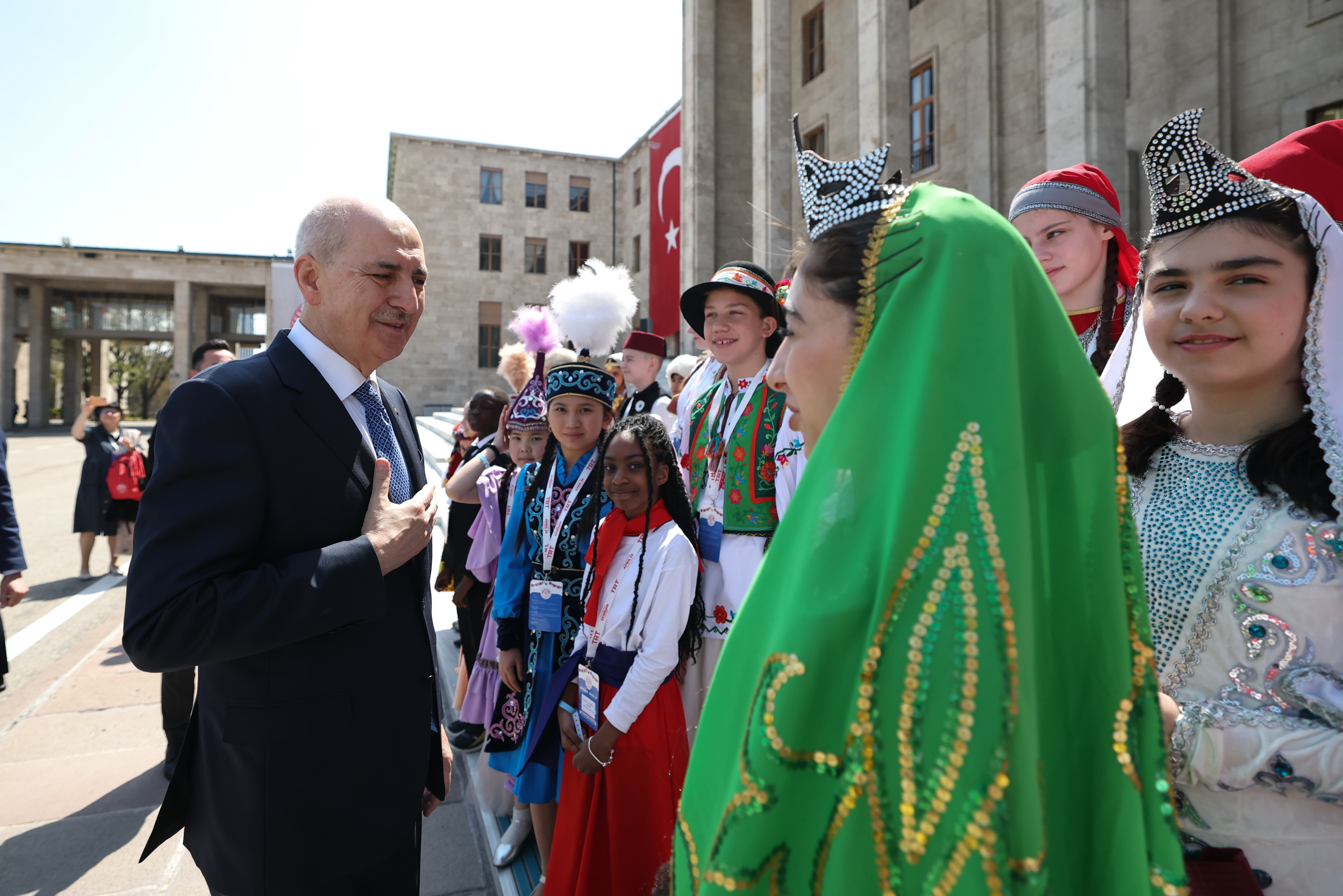 Kurtulmuş, TBMM Tören Salonu'nda, TRT 47. Uluslararası 23 Nisan Çocuk Şenliği kapsamında 30 ülkeden gelen dünya çocuklarını kabul etti.