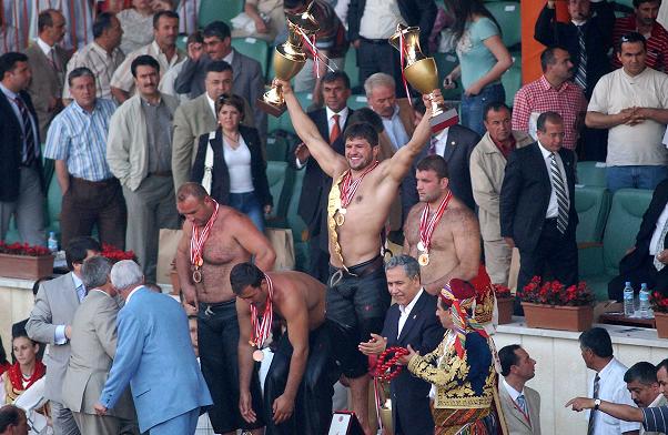 Bülent Arınç, kürsüye çıkan başpehlivan Şaban Yılmaz, ikinci Ekrem Yavuz, üçüncü Hasan Tuna ve Ahmet Yavuz'u tek tek kutlayarak, madalyalarını, kupa ve para ödüllerini verirken, daha sonra da başpehlivan olan Yılmaz'ın altın kemerini taktı.