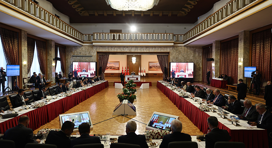 “Bunlardan bir tanesi, süreci algılama noktasındaki fikirlerdir. Yani terörün ortadan kaldırılması ve Türkiye'de artık terör meselesinin hiç konuşulmaz hale gelmesi sadece güvenlik politikalarıyla gerçekleştirilecek birtakım tedbirlerle ulaşılabilecek bir sonuç değildir. Çok katmanlı, çok boyutlu ve kapsayıcı bir yaklaşımın ortaya konulması şarttır. Zaten bizim de ana fikrimiz bu istikamettedir. Değerli başkanların, temsilcilerin, bunu teyit etmesi de bizim açımızdan memnuniyet vericidir.