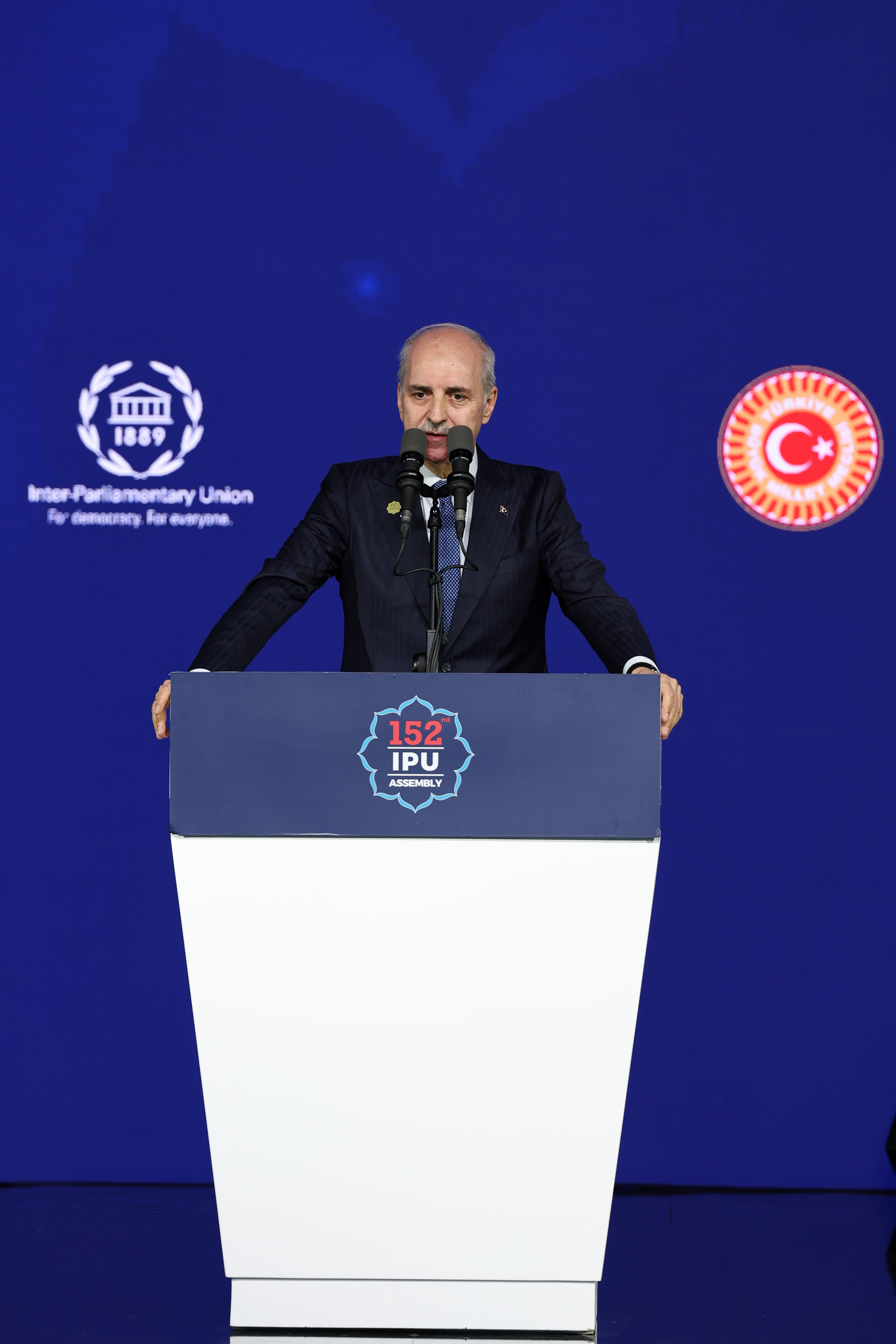 152’nci Genel Kurul’un ev sahipliğini yapan TBMM Başkanı Kurtulmuş, açılış törenindeki konuşmasına, parlamento başkanları, başkanvekilleri ve parlamenterleri bu önemli organizasyon dolayısıyla medeniyetlerin, geçmişle geleceğin birleştiği, dünyanın en güzel şehri İstanbul’da ağırlamaktan memnuniyet duyduğunu belirterek başladı.